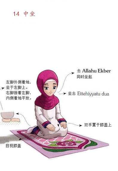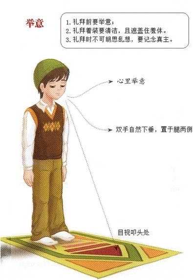 我们以撇什尼为例:主啊!我虔诚为您而礼,今天的撇什尼拜的四拜圣行拜,面向克尔白。如果成众礼的话还要加上跟随"依玛目"。