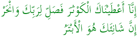 我确已赐你多福,故你应当为你的主而礼拜,并宰牺牲。怨恨你者,确是绝后的。